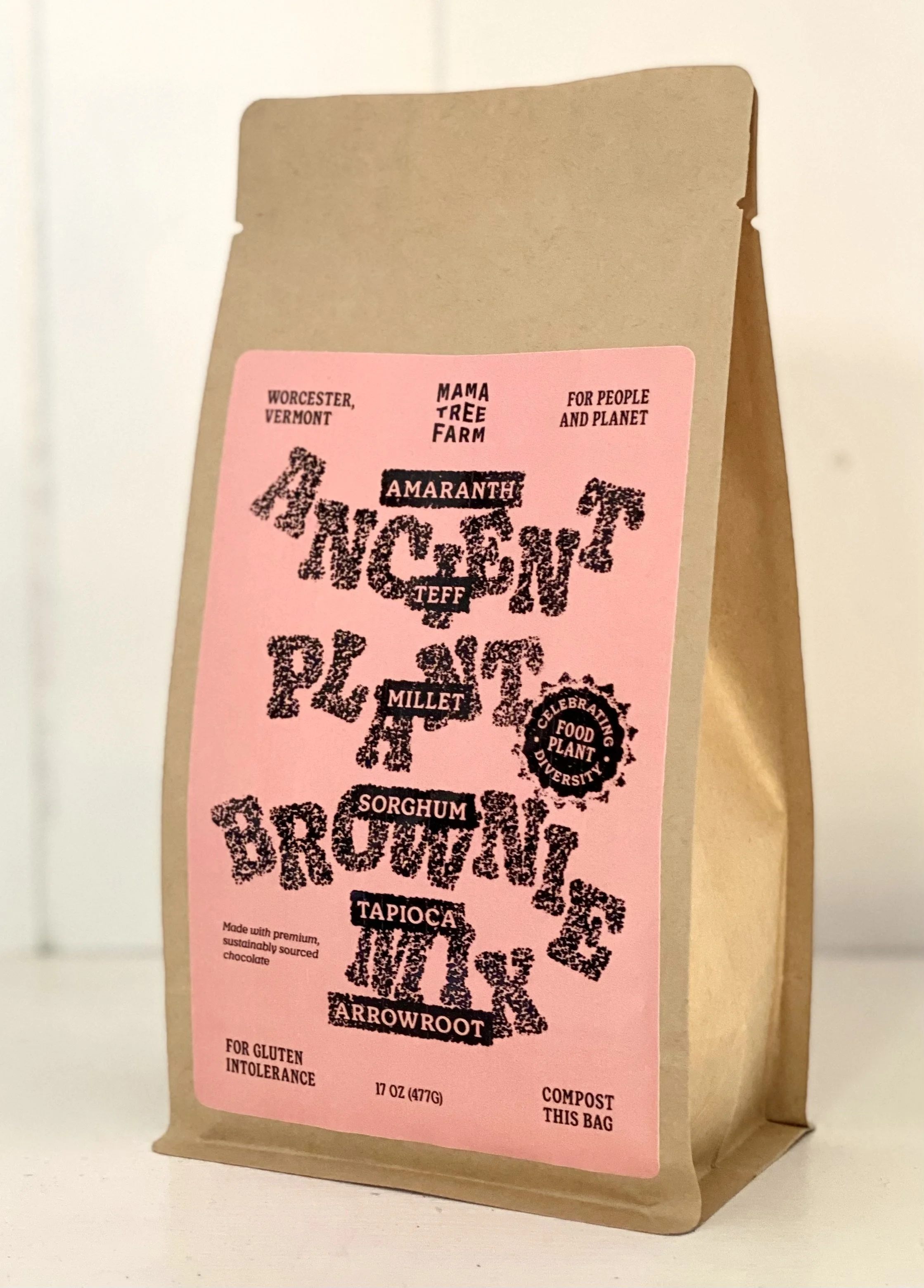 Six of the scrumptious Mama Tree Farm, Gluten-Free Baking Mixes:Choco Chip and Brownie. We make the mixes in Vermont in small batches with six different ancient plant flours—millet, teff, sorghum, amaranth, arrowroot, and tapioca. These flours are not only delicious, they are also high in phytochemicals, planet friendly, and support small farmer livelihoods. Brownies: Made with Fair Trade, Cocoa Horizons, Rainforest Alliance chocolate. Dark, moist, and packed with real chocolate; you might eat the whole pan, but freeze them if you can’t! Chocolate Chip Cookies are made with the same premium chocolate as the brownies. With their crunchy edges and chewy center, it’s hard to eat just one! Shipping included. Shipping included.
